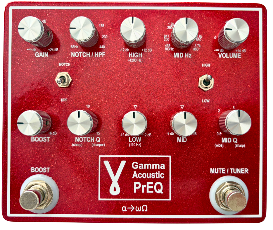 The Gamma PreQ was designed specifically for acoustic guitar, although it will work for any acoustic instrument (but not bass). It has plenty of clean gain as a preamp, a plethora of EQ options, and a dedicated boost.